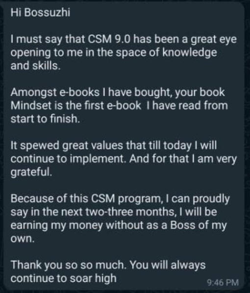 Back in 2019, I was not the top internet marketing strategist people know me to be today, I was in my shell confused and frustrated about life because I was not making a dime, not even a penny.The game changed for me when a friend of mine introduced me to a community of like-minded people on FacebookIt was there I formed a fresh mindset and immediately found what I really wanted to do.I started writing a book about mindset and documented how it was really easy to change your life just by changing your association to fit your personality.I sold that book and with the money I made, I went on to learn digital marketing, I made money selling online but sales dropped and I knew I needed to learn more.